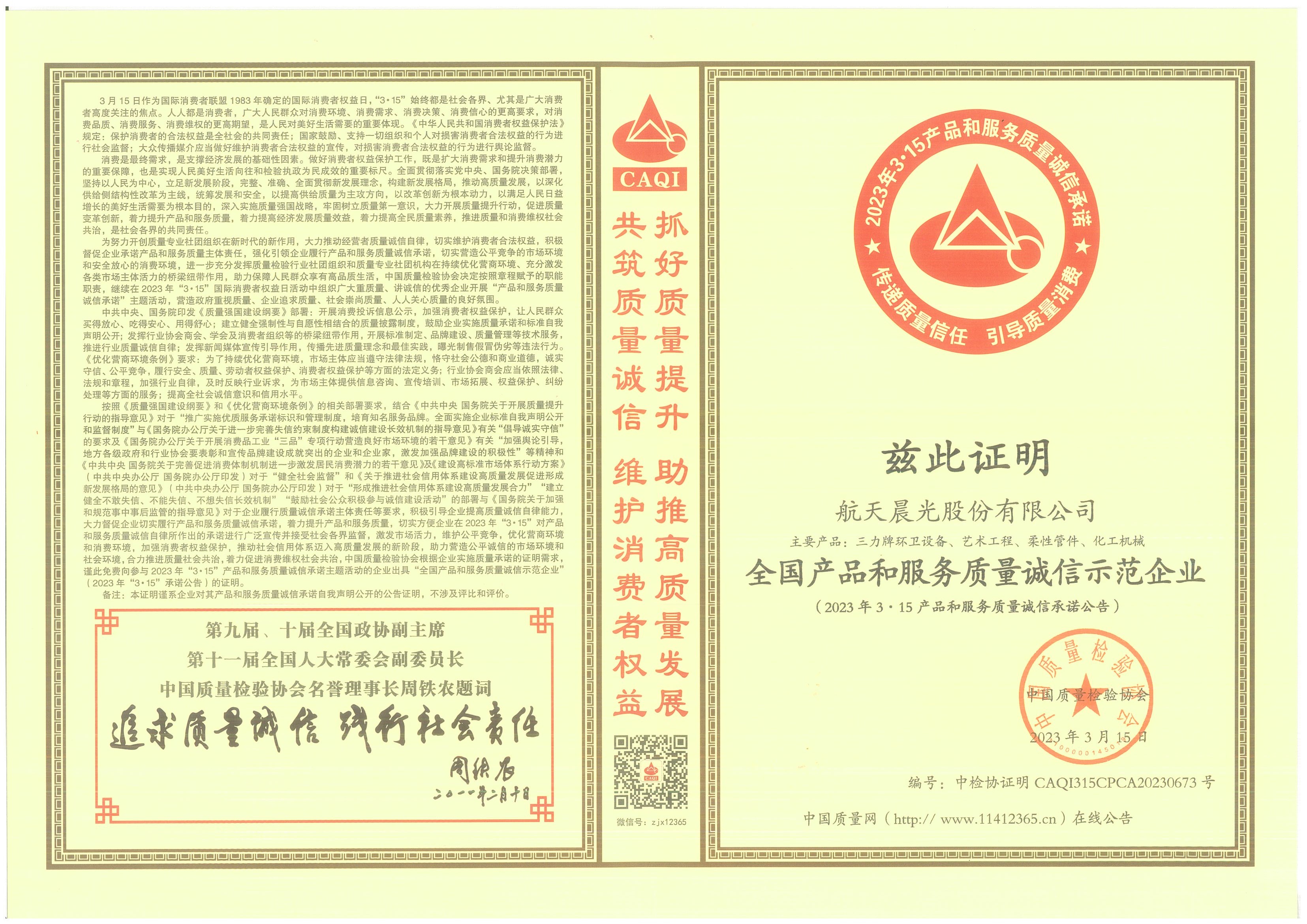 航天晨光股份有限公司  >  關于我們  >  榮譽資質 > 正文