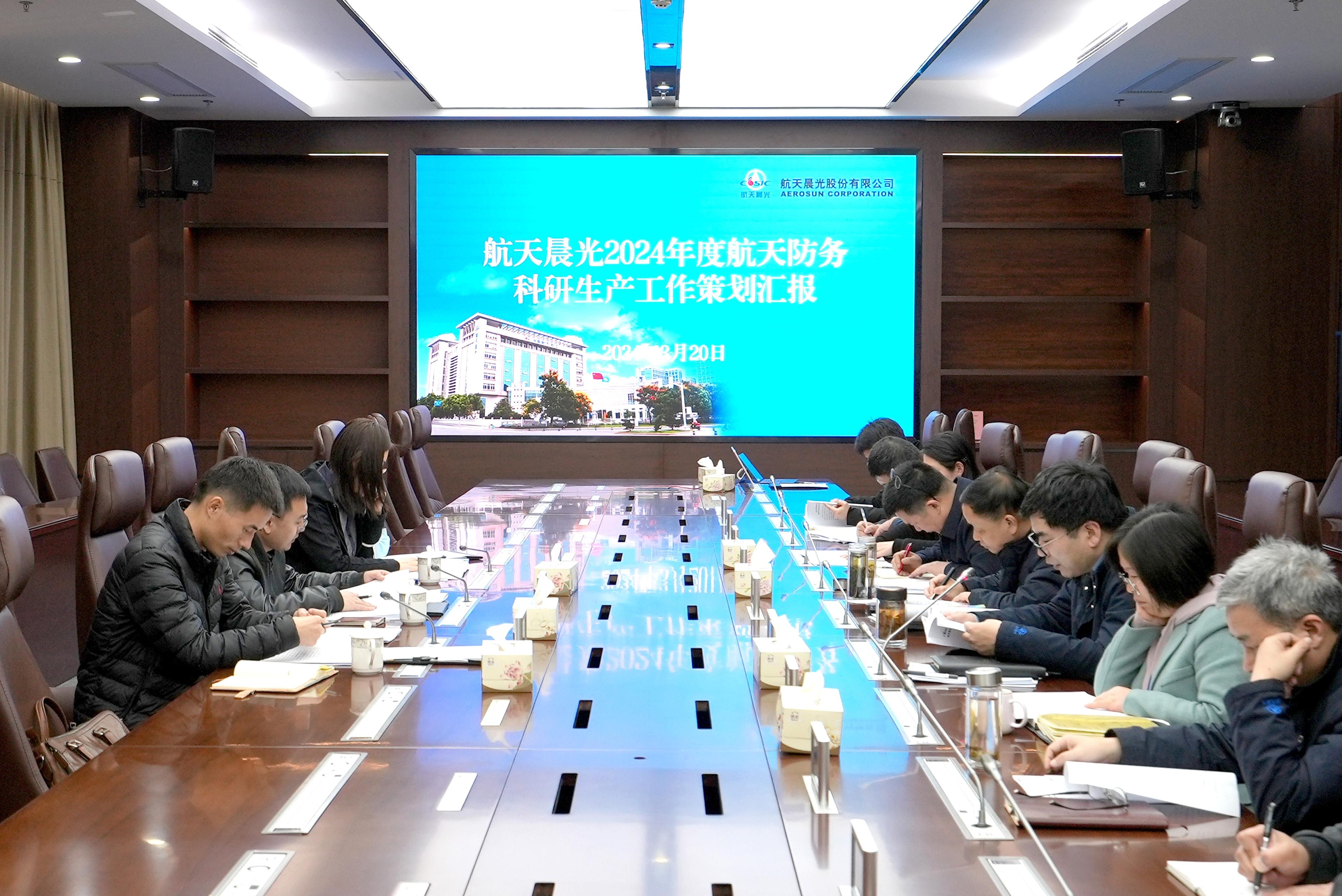 近日,集團公司科研生產部副部長楊揚一行到航天晨光檢查指導2024年度航天防務科研生產工作策劃情況,并聽取了專題匯報。公司黨委書記、總經理文樹梁,本部有關部門領導、所屬相關單位領導參加會議,會議由文樹梁主持。