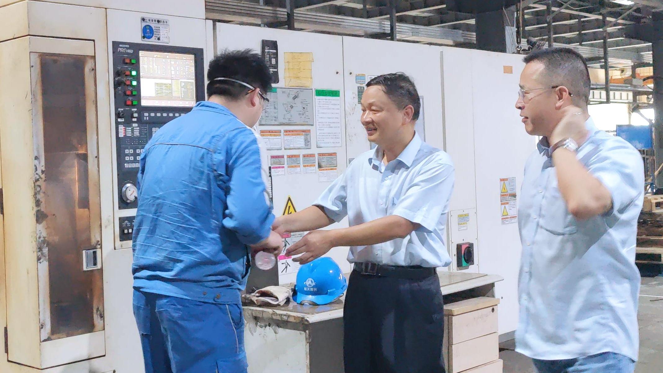 文樹梁一行深入晨光森田生產(chǎn)車間,實(shí)地查看了晨光森田各生產(chǎn)班組,詳細(xì)了解了科研生產(chǎn)、在手任務(wù)、產(chǎn)品質(zhì)量管控、新產(chǎn)品自主研制和安全生產(chǎn)等情況,并代表公司黨委對(duì)高溫下辛勤工作的一線人員進(jìn)行慰問(wèn)。