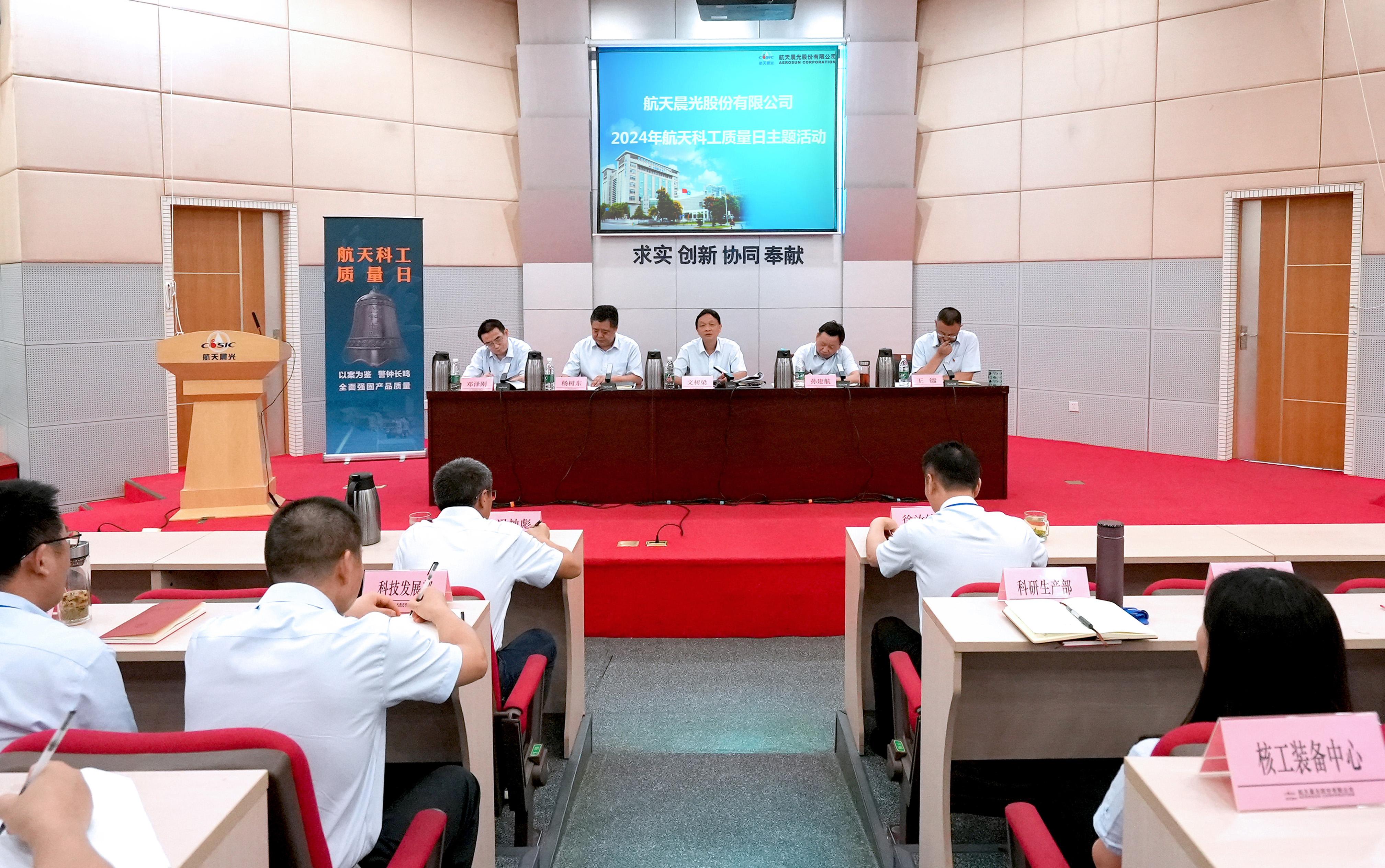 公司開展首個(gè)航天科工質(zhì)量日主題活動(dòng),傳達(dá)集團(tuán)公司航天科工質(zhì)量日主題活動(dòng)精神,公司黨委書記、總經(jīng)理文樹梁帶頭宣講質(zhì)量形勢(shì),分析質(zhì)量案例,指出存在不足,引導(dǎo)廣大干部職工統(tǒng)一思想、凝聚共識(shí)、扛牢責(zé)任。特種分公司、軟管分公司等四家單位談?wù)J識(shí)、找差距、話舉措,表決心,以實(shí)際行動(dòng)全面強(qiáng)固產(chǎn)品質(zhì)量,打造精品裝備,在新形勢(shì)新要求下堅(jiān)定不移履行好強(qiáng)軍首責(zé)。