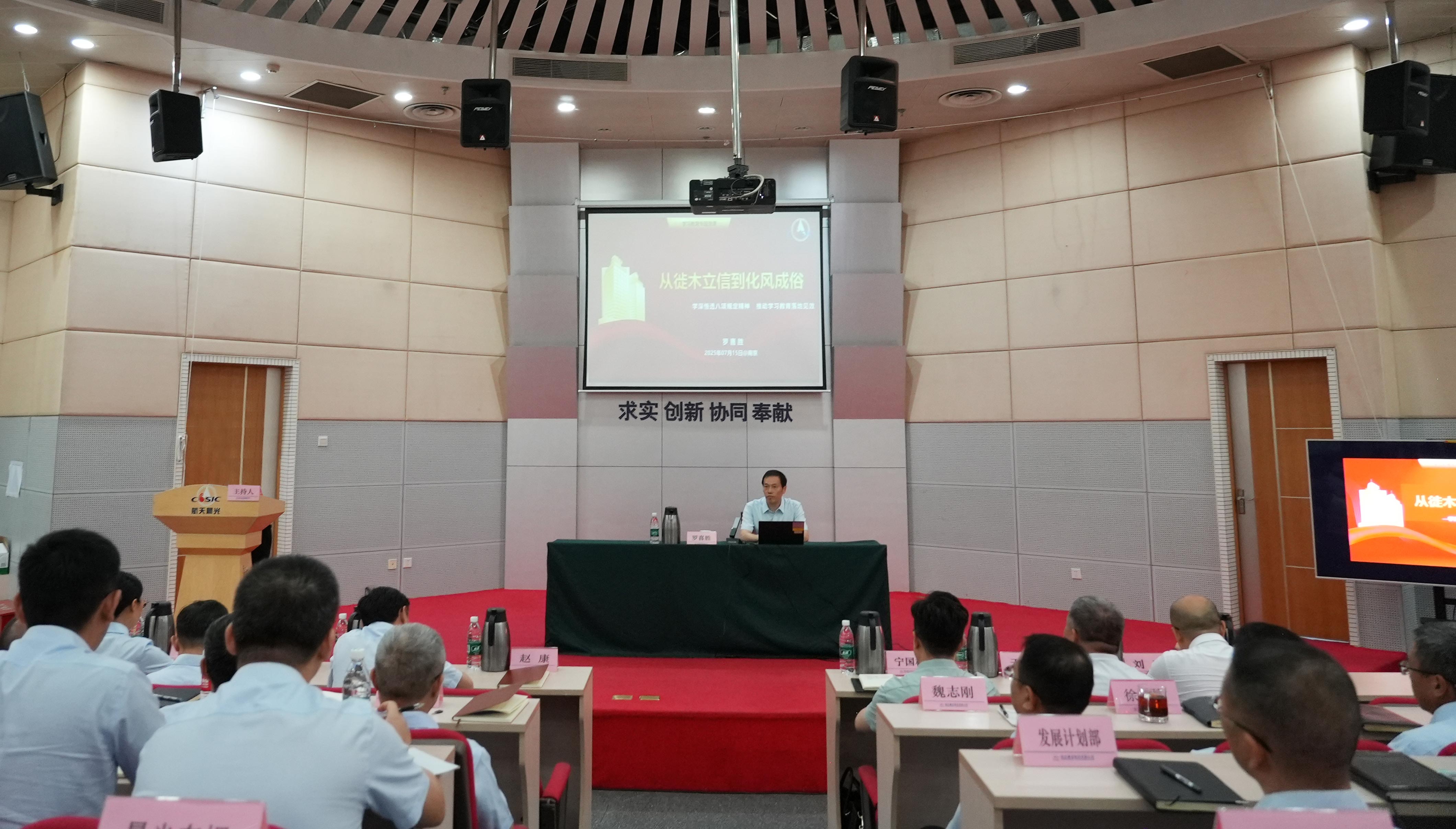 羅喜勝以《從徙木立信到化風成俗 學深悟透中央八項規定精神 推動學習教育落地見效》為題,與黨員干部職工共同學習領會習近平總書記關于加強黨的作風建設的重要論述和中央八項規定精神,引導黨員干部職工以優良作風凝心聚力、干事創業,為打造“不一樣的航天科工”貢獻更多航天晨光力量。