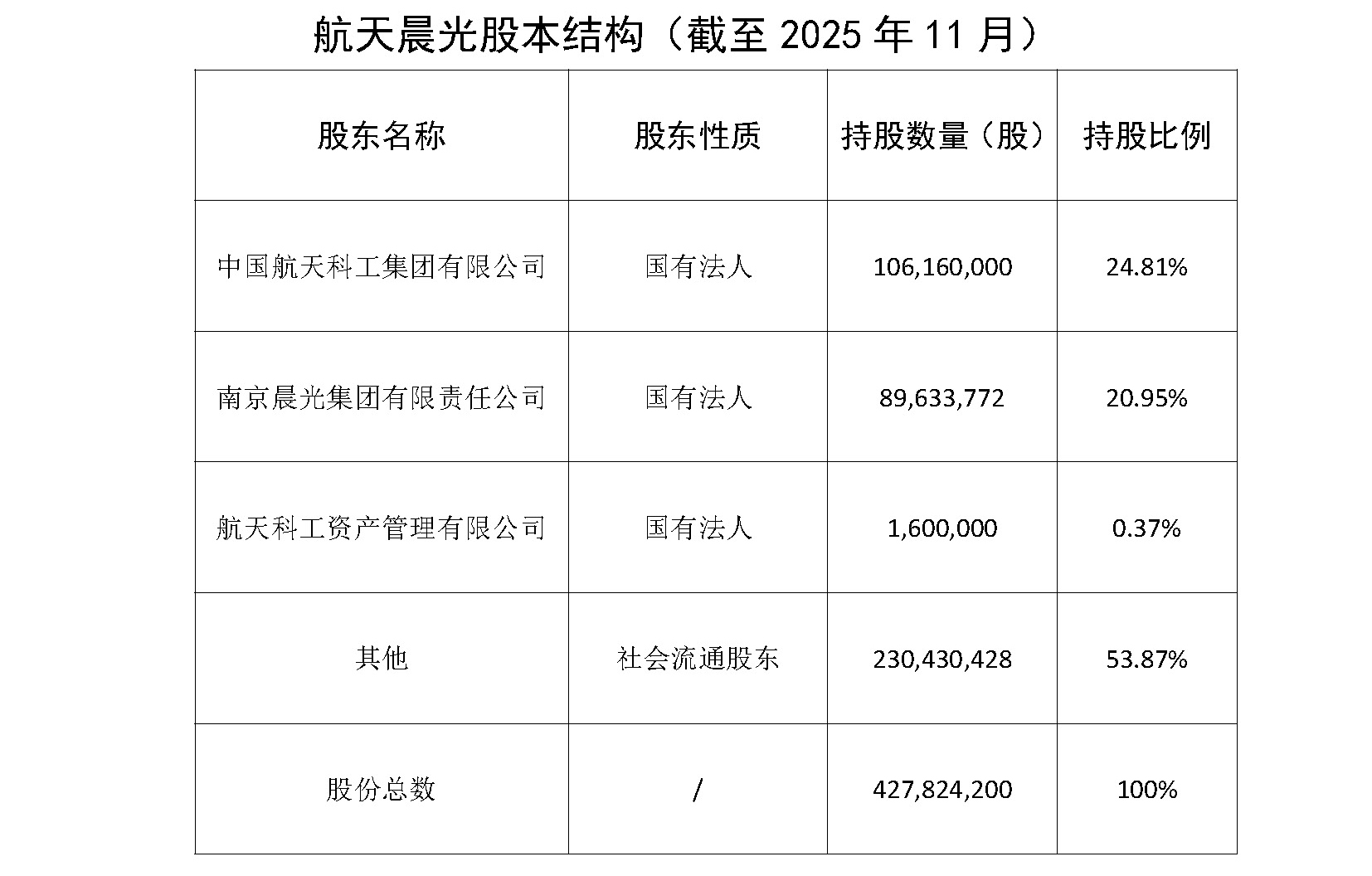 航天晨光股份有限公司  >  投資者關系  >  公司治理  >  股本結構 > 正文