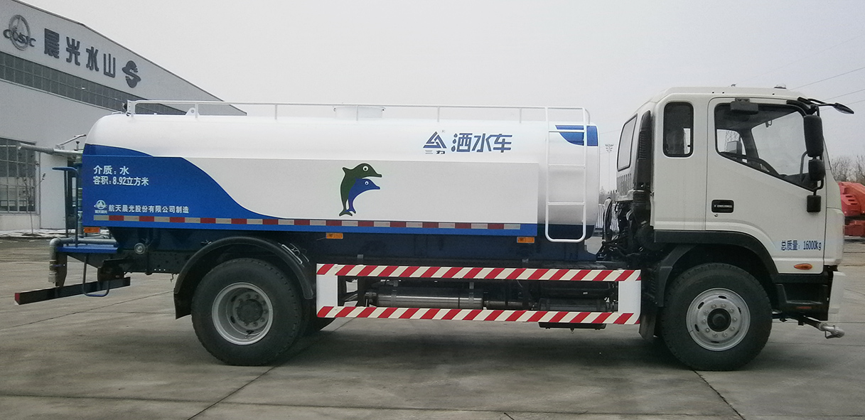CGJ5162GSSE4型灑水車具有五大功能:a. 對路面進行沖洗、灑水;b.運輸功能;c. 應急消防;d. 對樹木園林進行噴洗、澆灌養護;e. 作移動泵站。是專門用于城鎮道路、公路、橋梁、工程、工地等路面沖洗、灑水、降塵以及園林綠化噴洗和澆灌的專用車輛。
